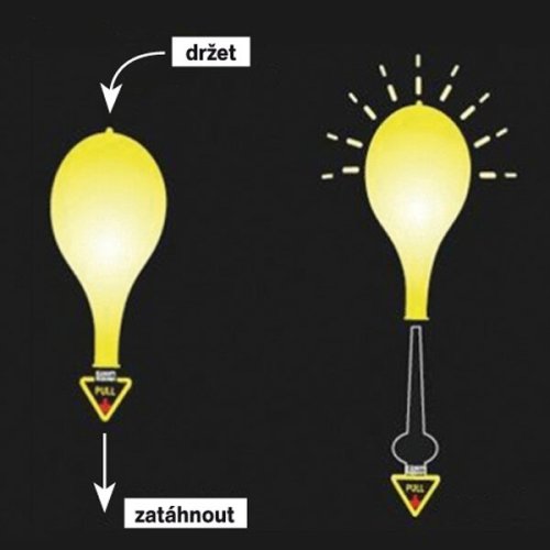Nafukovací LED balónky duhové s potiskem. V balónku je svítící kulička, která se aktivuje vytažením bezpečnostního proužku. Balónek je možné naplnit vzduchem nebo héliem. Kulička vydrží svítit cca 24 hodin s klesající intenzitou. 4 kusů v balení.