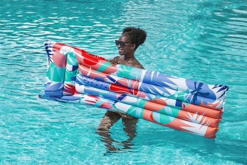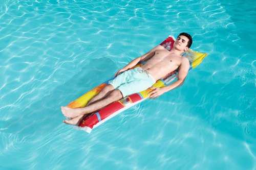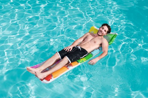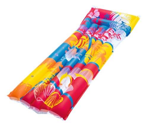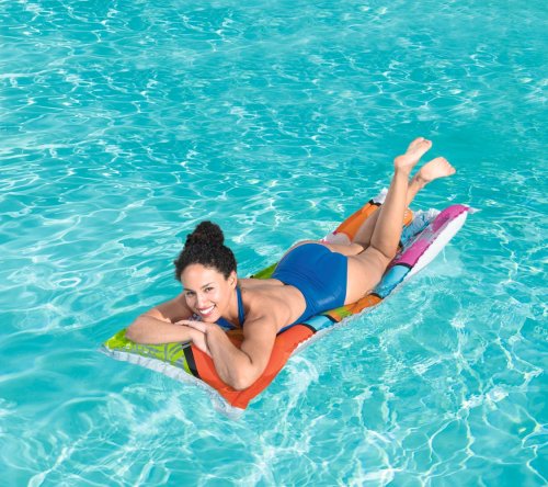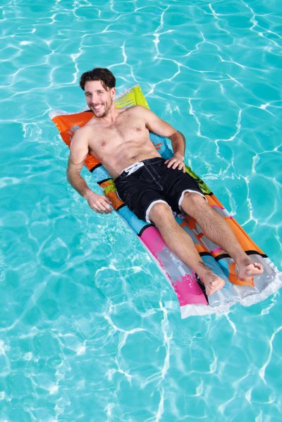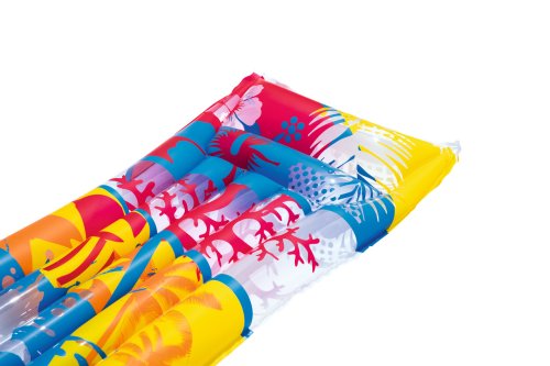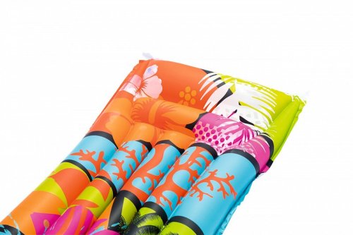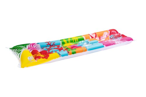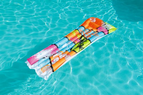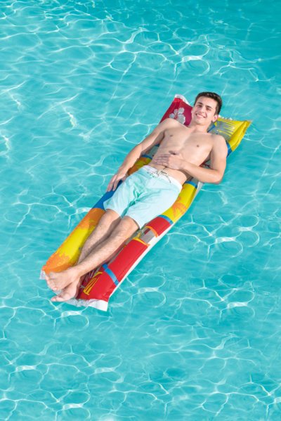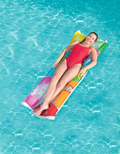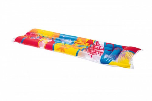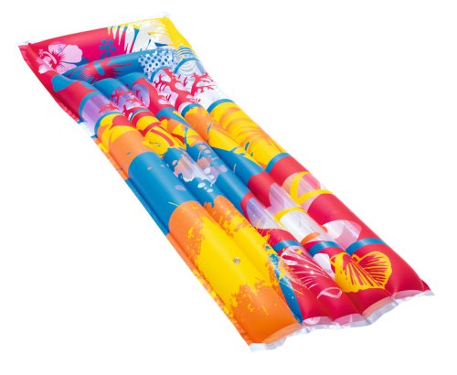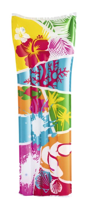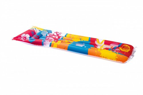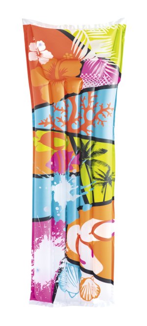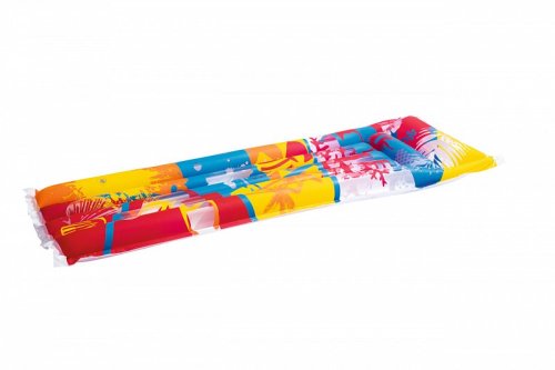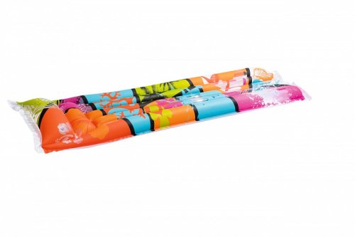 Klasická nafukovací matrace v novém grafickém designu potěší každého milovníka vodních radovánek! Matrace má dvoukomorovou konstrukci polštářů a je vyráběna ve dvou grafických provedeních. Matraci je možné využívat jedním dospělým (max. nosnost 90 kg). Opravná sada je součástí balení. Vyrobeno z kvalitního a odolného vinylu o síle 0,20 mm. Rozměr: 183 x 69 cm.