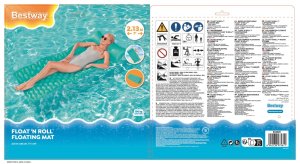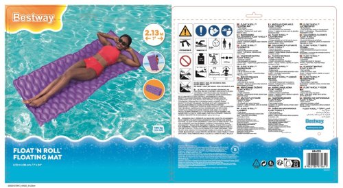 Nafukovací lehátko 2,13 m x 86 cm. Lehátko je vyrobeno z kvalitního vinylu s dvěma vzduchovými komory a ve třech barvách. Maximální váhový limit je 90 kg. Opravná záplata je součástí balení.