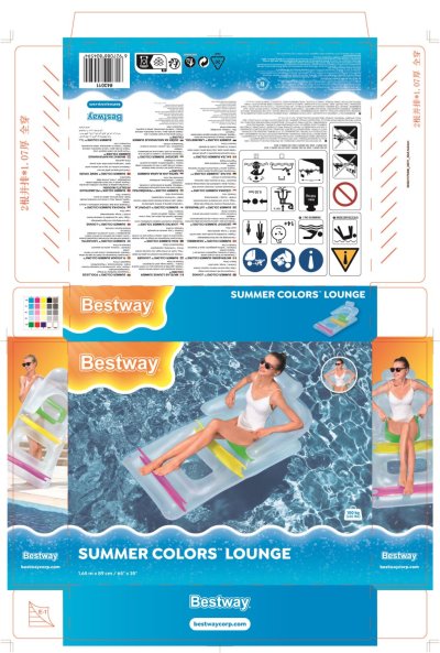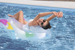 Pohodlné nafukovací lehátko o rozměrech 1,65 m x 89 cm. Lehátko je vyrobeno z kvalitního vinylu, má dvě nafukovací komory a opěrku zad pro pohodlí. Maximální váhový limit je 90 kg. Opravná záplata je součástí balení.