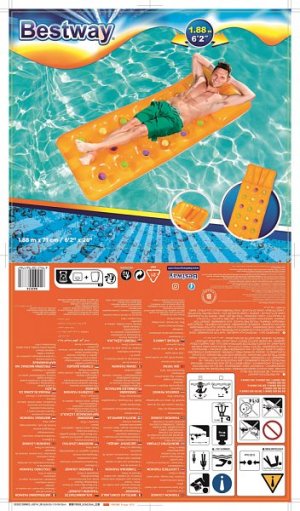 Nafukovací lehátko s podpěrou pod hlavu, 188 x 71 cm, 2 ast. - žlutá, modrá, nosnost 90kg