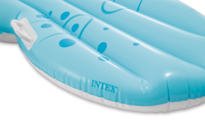 Pro nafouknutí a vyfouknutí je lehátko vybaveno bezpečnostním ventilkem, který zabraňuje úniku vzduchu a zároveň umožňuje rychlé a snadné plnění vzduchem. Na spodní straně je lehátko opatřeno bílým okrajem, který pomáhá udržet stabilitu a zabraňuje převrácení. Celkově je tento produkt vhodný pro letní aktivity, zejména při koupání v bazénech či na klidné vodě, kde dětem poskytne bezpečné a zábavné místo k odpočinku.