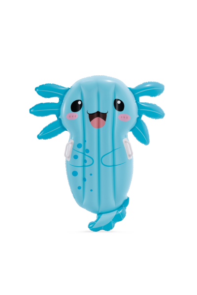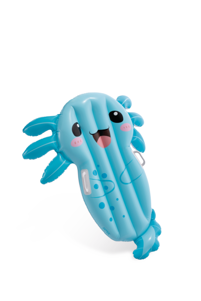 Nafukovací lehátko ve tvaru axolotla je navrženo jako zábavná a praktická pomůcka pro děti od tří let, které si chtějí užít vodní radovánky. Tento produkt je vyroben z odolného PVC materiálu v jasně modré barvě, která odpovídá tvaru a charakteristickému vzhledu axolotla. Lehký a přitom pevný materiál zajišťuje dostatečnou stabilitu na vodní hladině a snadnou manipulaci.