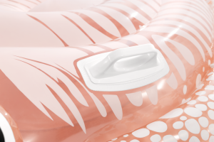 Lehátko je tvarováno velmi detailně, s výraznými nafukovacími očima a charakteristickými detaily těla sépie, které zvyšují jeho vizuální atraktivitu. Pro lepší stabilitu a bezpečnost jsou na povrchu lehátka dvě pevná plastová madla, opatřená bílými úchyty, které usnadňují držení a zlepšují kontrolu nad lehátkem ve vodě. Díky nim se děti mohou cítit jistěji a bezpečněji při plavání nebo lenošení na vodě.