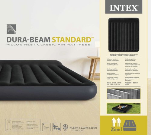 Nafukovací matrace Intex KING DURA-BEAM s rozměry 183 × 203 × 25 cm poskytne komfortní spánek doma i na cestách. Díky vestavěnému polštáři a technologii Fiber-Tech™ si užijete stabilní a pohodlné ležení na jakémkoli povrchu.