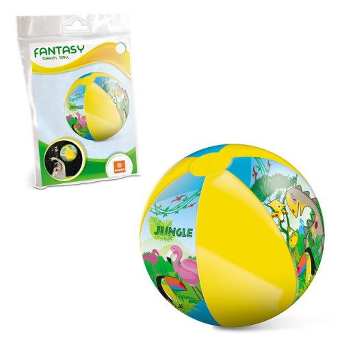 Nafukovací míč o průměru 50 cm s motivem džungle, je vyroben z kvalitního PVC materiálu. S míčem si můžeš hrát doma, venku, ale i ve vodě.