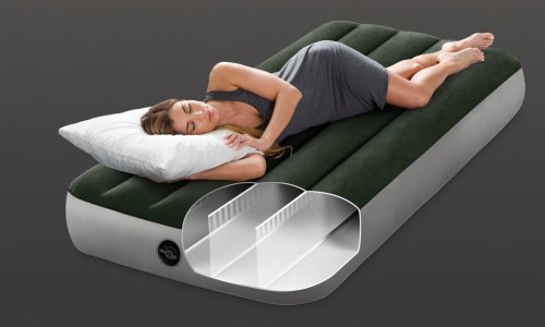 Nafukovací postel o velikosti 76 cm x 1,91 m x 25 cm. Maximální nosnost 136 kg. Čas nafouknutí je 2,5 minuty.
