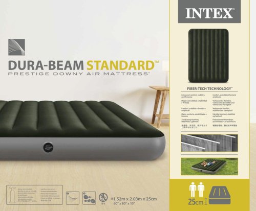 Nafukovací postel o velikosti 1,52 cm x 2,03 m x 25 cm. Maximální nosnost 272 kg. Čas nafouknutí je 4 minuty.