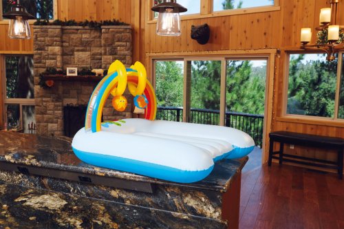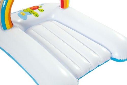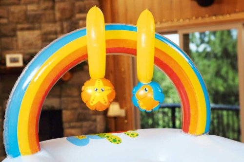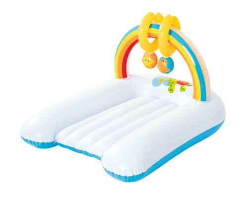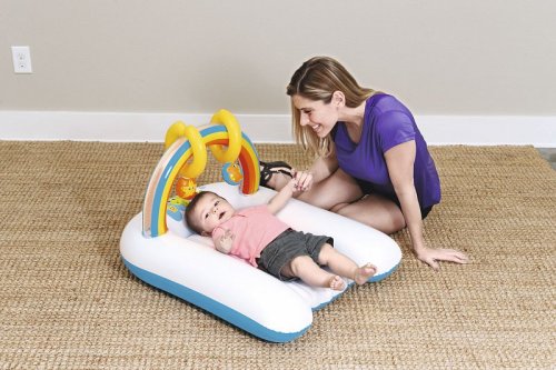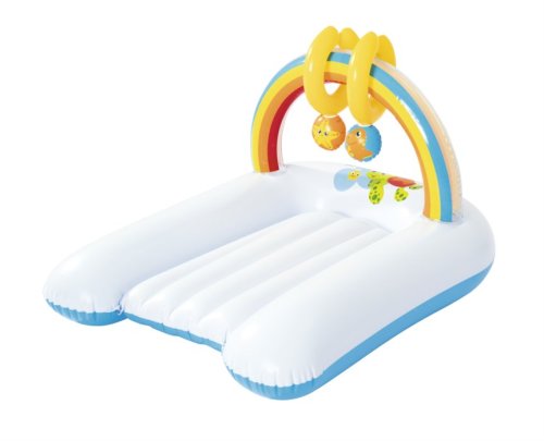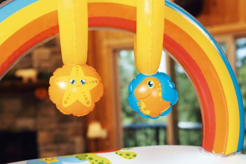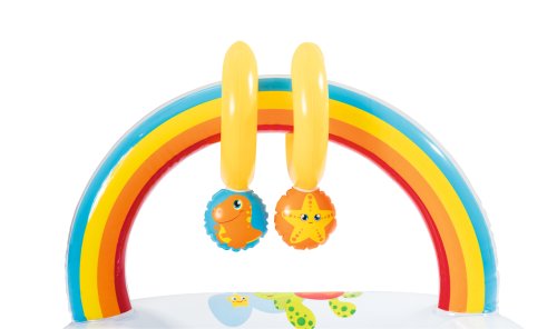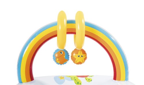 Podložka je měkká pro naprosté pohodlí dítěte. Na oblouk lze umístit hrací kroužky, které pískají. Díky bezpečnostním ventilům se hračka snadno nafukuje a vyfukuje.