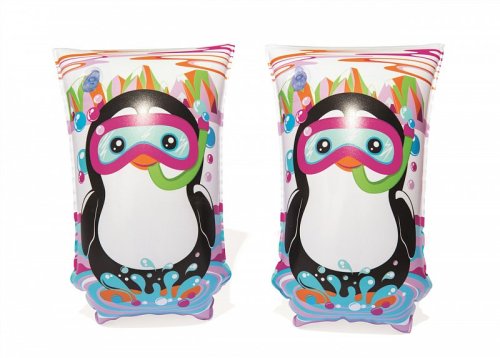 Dětské nafukovací rukávky v okouzlujícím designu. Můžete si vybrat ze dvou motivů - žraloka či tučňáka. Rukávek má dvě vzduchové komory. Rozměr rukávku 30 x 15 cm. Věk: 5-12let. Užívání vždy pod dohledem dospělé osoby.