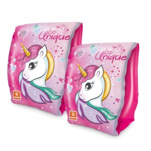 Nafukovací rukávky jsou nezbytnou součástí pro začínající plavce! Děti si mohou bezpečně užívat vodní radovánky s rukávky v motivu oblíbeného jednorožce. Jsou vyrobeny z PVC s rozměry 23 x 15 cm.