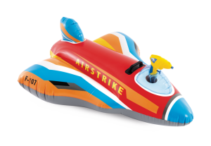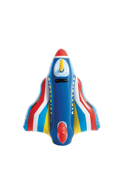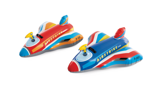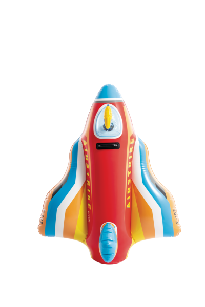 Nafukovací stíhačka s vodní pistolkou je letní venkovní hračka určená pro děti od 3 let, která kombinuje zábavu na vodě s aktivním hraním. Tento produkt má podobu stylizovaného stíhacího letounu, který je vyroben z odolného, kvalitního PVC materiálu s pestrým barevným designem v odstínech červené, modré, žluté a bílé. Letadlo je vybaveno pohodlným pevným madlem, které umožňuje dětem bezpečné držení během hraní na vodě.