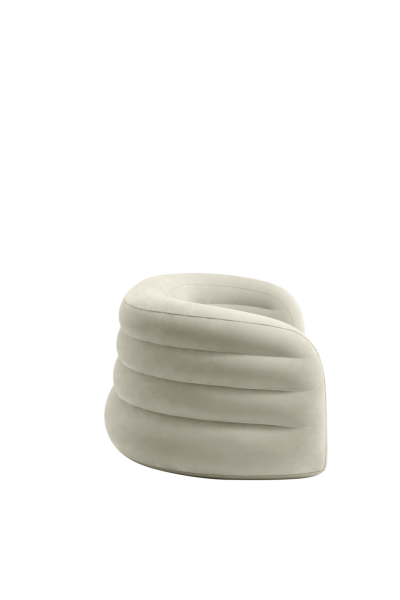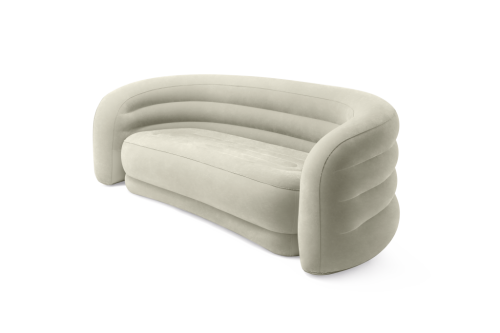 Nafukovací zaoblená pohovka Curve představuje moderní a praktický doplněk do interiéru, který kombinuje pohodlí s jednoduchostí použití. Její design je charakteristický zaoblenými tvary, které dodávají nábytku příjemný a organický vzhled. Povrch pohovky je potažen plyšovým sametem v neutrální olivově béžové barvě, což zajišťuje příjemný a měkký dotek, zároveň pak působí elegantně a snadno se začlení do různých stylů zařízení místnosti.