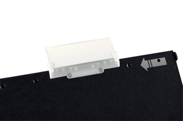 • Inovativní průhledný skrývatelný rozlišovač pro snazší ukládání a přenos závěsných desek na cesty, jednání apod.