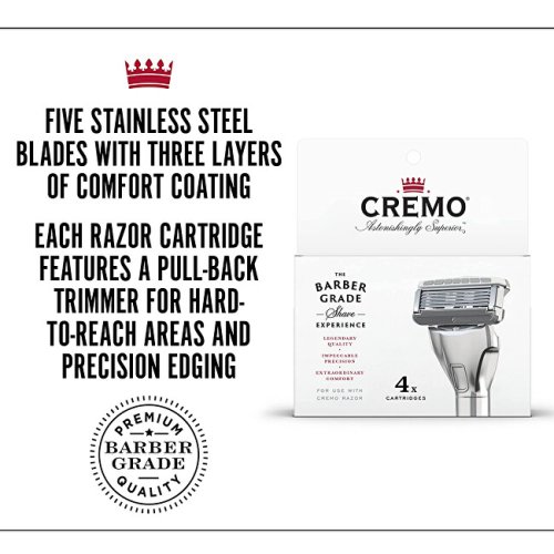 Pětibřitové náhradní hlavice obsahují legendární lubrikační složení holicího krému Cremo a potažený ochranný proužek pro hladké a pohodlné oholení.