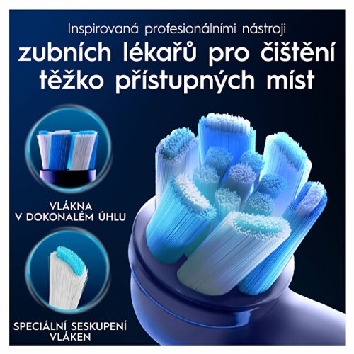 Kartáčkové hlavice Oral-B iO Ultimate Clean jsou navrženy pro nejvyšší možnou účinnost v odstraňování zubního plaku, a to i z hůře přístupných míst. Díky zkosení vláken pod úhlem 16° a profesionálně inspirovanému kulatému tvaru hlavice nabízí dokonalé přizpůsobení každému zubu. Technologie jemných mikrovibrací zajišťuje nejen hloubkové, ale i šetrné čištění. Hlavice jsou určeny výhradně pro elektrické zubní kartáčky řady Oral-B iO a zajišťují pocit profesionální čistoty každý den.