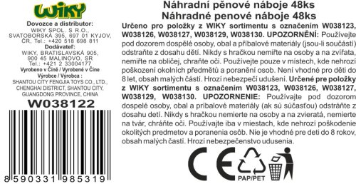 Náhradní pěnové náboje 48 ks. Rozměry 7x1,3 cm. Určeno jen pro položky W038123, W038126, W038127, W038129, W038130.