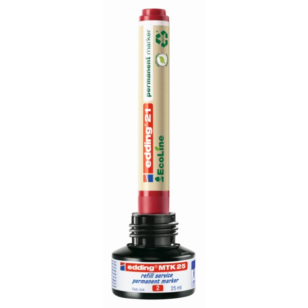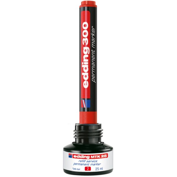 Inkoust je vhodný pro permanentní popisovače edding e-300, e-330, e-370, e-400, e-2000, e-2200, Ecoline e-21, Ecoline e-22, Ecoline e-25