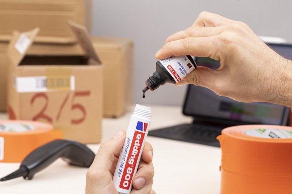 Náhradní inkoust do permanentních popisovačů Edding T 100 vdechne popisovačům Edding nový život - po jejich dopsání není nutné je vyhazovat
