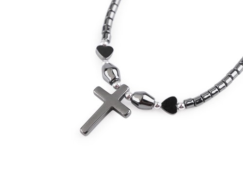 Náhrdelník hematitový srdce, křížek - šedá hematit křížek