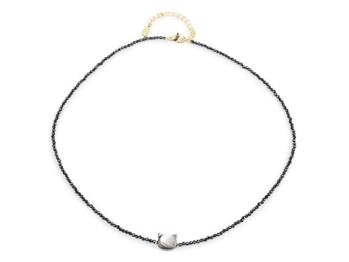 Náhrdelník z broušených korálků je ve svém středu ozdobený perleťovým korálkem kočky. Je elegantním doplňkem, který zaujme svým precizním zpracováním a jedinečným designem, decentně dozdobí váš dekolt. Je ideálním dárkem pro milovníky zvířat a všechny, kteří hledají něco originálního pro své každodenní outfity. Zapíná se na karabinku a prodlužovací řetízek z nerezové oceli.