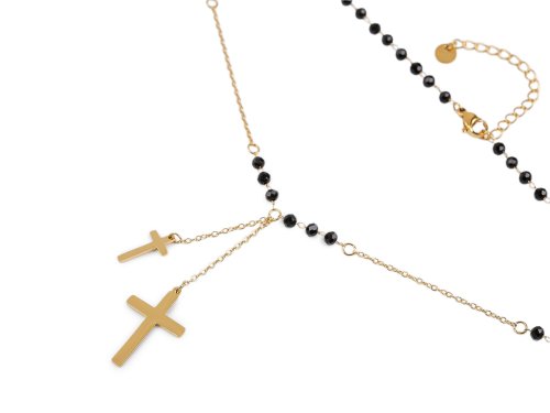 Náhrdelník s křížky je perfektním doplňkem pro ty, kteří milují jemnou kombinaci moderního a klasického designu. Jemně broušené korálky v kombinaci se zářivým kovovým leskem vytvářejí sofistikovaný vzhled, který přitahuje pozornost. Zapíná se na karabinku. S možností adjustačního řetízku se snadno přizpůsobí vašemu krku, aby pokaždé perfektně seděl.