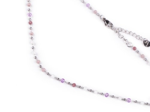 Jemný ketlovaný náhrdelník je vyrobený z kvalitní nerezové oceli. Je ozdobený broušenými a kovovými korálky. Broušené korálky se jemně třpytí, náhrdelník se hodí k slavnostním šatům i na běžné nošení, má velice všestranné využití. Zapíná se na karabinku a prodlužovací řetízek.
