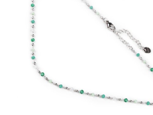 Jemný ketlovaný náhrdelník je vyrobený z kvalitní nerezové oceli. Je ozdobený broušenými a kovovými korálky. Broušené korálky se jemně třpytí, náhrdelník se hodí k slavnostním šatům i na běžné nošení, má velice všestranné využití. Zapíná se na karabinku a prodlužovací řetízek.