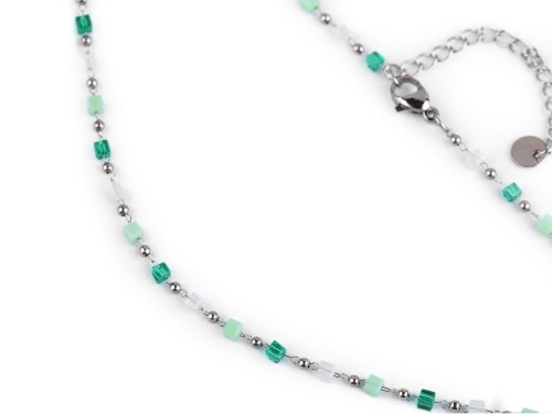 Jemný ketlovaný náhrdelník je vyrobený z kvalitní nerezové oceli. Je ozdobený broušenými korálky ve tvaru kostiček. Broušené korálky se jemně lesknou, náhrdelník se hodí k slavnostním šatům i na běžné nošení, má velice všestranné využití. Zapíná se na karabinku a prodlužovací řetízek.