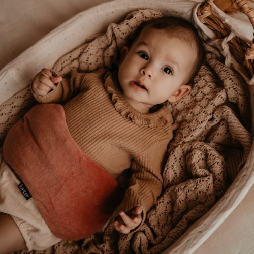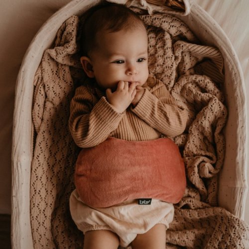 • speciálně navržený tvar zajišťuje, že se polštářek rozprostírá po stranách bříška miminka a tak jej příliš nezatěžuje a netlačí na něj