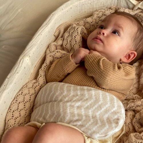speciálně navržený tvar zajišťuje, že se polštářek rozprostírá po stranách bříška miminka a tak jej příliš nezatěžuje a netlačí na něj