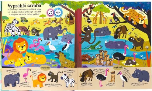 Objevujte na stránkách této úžasné zvukové knížky přes 200 zvířat z celého světa! Zvířata na stránkách doslova ožijí, jakmile u nich stisknete vyznačené místo. Tato kniha obsahuje jak skutečné zvířecí zvuky, tak i namluvené názvy zvířat. Kniha je tedy pro malé děti tak zajímává a interaktivní, že po ruce nepotřebují ani žádného dospěláka, který by jim názvy zvířat musel předčítat! V knize se dozvíte i mnoho zajímavých informací o různých zvířatech a dokonce přes 70 zvířat můžete hledat v režimu "hry". Tak na nic nečekejte, pojďte se seznámit se zvířaty z celého světa a objevujte, jaké zvuky vydávají.