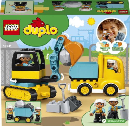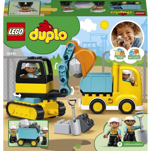 "Stavebnice LEGO® DUPLO® Náklaďák a pásový bagr (10931) podnítí děti k průzkumu neomezených možností, které nabízí kreativní hraní. Děti se ponoří do přehrávání úžasných dobrodružství s náklaďákem, bagrem a 2 dělníky, přičemž budou rozvíjet důležité fyzické a kognitivní dovednosti, které jim vydrží po celý život.