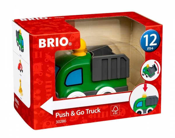 "Píp píp!". Zde přichází 30286 Push & Go Truck – hravý náklaďák pro batolata, která se učí plazit a chodit. Jednoduše zatlačte hlavu řidiče dolů a jede se! Udělejte to a nechte zábavu začít znovu. Tento zábavný náklaďák má také pracovní kontejner, takže můžete nakládat, přepravovat a vykládat své hračky. Tato hračka, vyrobená z kombinace evropského bukového dřeva s certifikací FSC a vysoce kvalitních plastů, vykouzlí úsměv na tváři každému. Rozměr balení: 20 x 14 x 10 cm. Věk: 1+