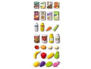 Nákupní vozík s potravinami. Rozměry vozíku 40 x 24,5 x 44 cm. Obrázkový návod na složení se nachází na obalu. Balení obsahuje 56 kusů potravin.