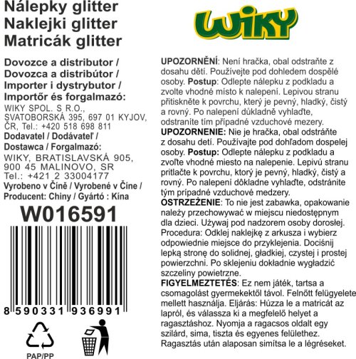 Nálepky 23x11 cm abecedy s glitrem. 5 různých druhů (barev)