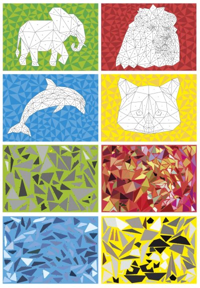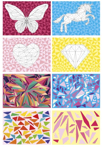 Nalepování samolepek podle čísel A4 – intarizie. Balení obsahuje 4 obrázky, 4 archy samolepek. Dva druhy.