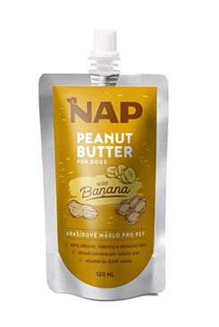 Doplňkové krmivo pro psy, arašídové máslo s banánem.