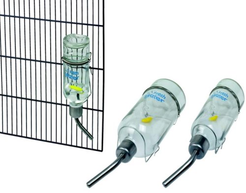 Napáječka ze skla, která se ke kleci uchytí z vnější strany a dovnitř klece se jen prostrčí kovová trubička. Napáječka má uvnitř plovák označující výšku hladiny vody. Obsah: 177 ml Použití: Vhodná pro drobné savce a zakrslé králíky. V napáječce by měla být denně vyměněna voda. S ohledem na možnost tvorby řas, doporučujeme vždy před výměnou vody napáječku řádně vypláchnout.