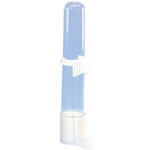 Úzká napáječka na vodu pro papoušky o objemu 50 ml. Napáječka je vybavena úchytem na dráty klece.