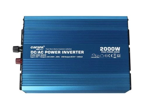 Napěťový měnič Carspa P2000U-24 o napětí 24V / 230V je vhodný pro použití v domácnosti, při kempování nebo na cestách, kdy se pyšní vynikajícím zpracováním z vysoce kvalitních materiálů, možností uzemnění, funkcí hladkého startu a čistým sinusovým výstupem. Představuje skvělé řešení pro napájení menších spotřebičů s odporovou zátěží, jako jsou notebooky či malé ruční nářadí, kdy je navíc vybavený USB portem pro nositelnou elektroniku všeho druhu s jmenovitým napětím 5 V.
