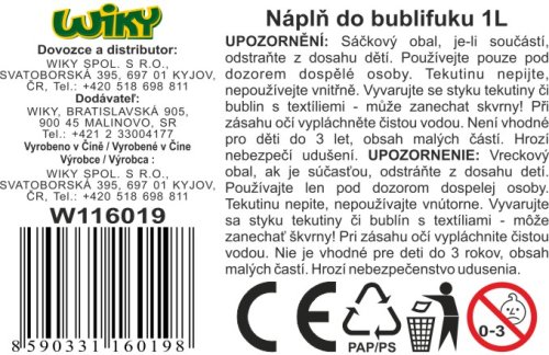 Náhradní náplň do všech bublifuků. Každé dítě miluje bublifuk. Bubliny jsou jako kouzelné balonky, které si dítě může vykouzlit a obdivovat jejich duhovou barvu… 1litr.