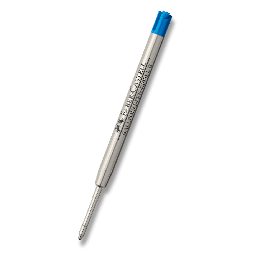 • modrá barva, * šíře stopy B, * náplň s ocelovou špičkou vhodná k propisování, * neblednoucí a barevně stálá, Náplň je vhodná do všech kuličkových per Faber-Castell.