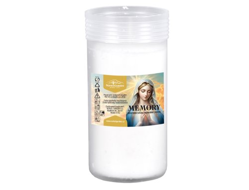 Náhradní náplň do hřbitovní lampy vyrobená z lisovaného parafínového vosku, určená jako náhrada do hřbitovních lamp. Díky kvalitnímu knotu zajišťuje rovnoměrné hoření bez nadměrného zakouření. Použití je doporučeno pouze na nehořlavé podložce a pro venkovní prostředí. Hmotnost náplně: 115 g. Doba hoření: 36 hodin. Rozměry: průměr 5 cm, výška 12 cm. Barva: bílá.