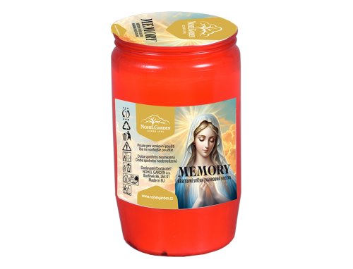 Náhradní náplň do hřbitovní lampy vyrobená z olejové směsi, určená jako náhrada do hřbitovních lamp. Díky kvalitnímu knotu zajišťuje rovnoměrné a čisté hoření bez nadměrného zakouření. Použití je doporučeno pouze na nehořlavé podložce a pro venkovní prostředí. Hmotnost náplně: 140 g. Doba hoření: 44 hodin. Rozměry: průměr 5,5 cm, výška 9,5 cm. Barva: červená.