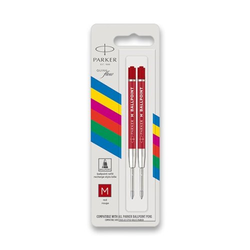 Náhradní náplň do kuličkových per (kuličkových per, propisek) Parker, šíře M (1,0 mm). Balení obsahuje 2 ks v červené barvě.