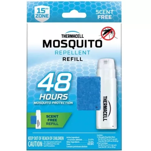 Sada Thermacell s butanovými náplněmi a účinnými polštářky bez vůně poskytuje ochranu před komáry celkem až na 48 hodin. Syntetická účinná látka D-trans-aletrín je inspirovaná přírodním pyretrinem a zajišťuje efektivní a spolehlivou obranu proti hmyzu.