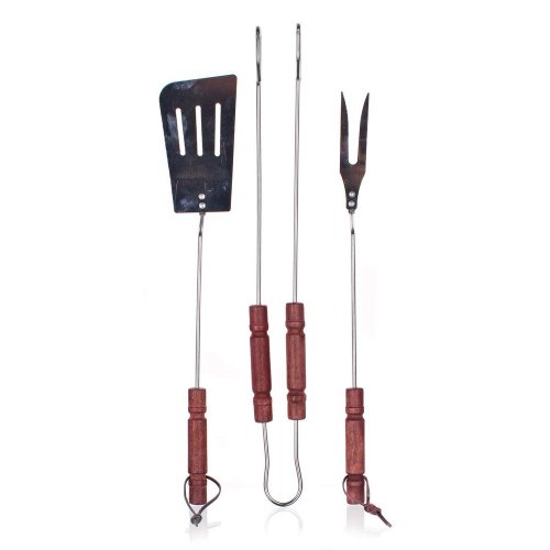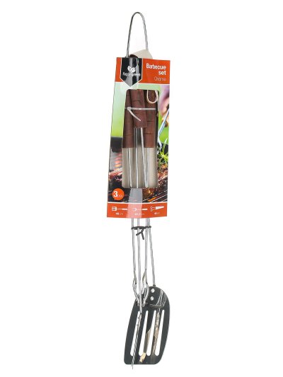 Sada grilovacího náčíní z pochromované oceli. Rukojeť je ze dřeva. Sada obsahuje základní nářadí potřebné při grilování. Nářadí je vybaveno poutky pro zavěšení.