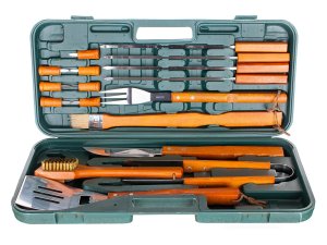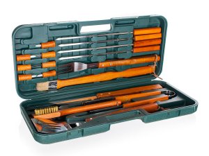 Nářadí grilovací nerez, dřevěná rukojeť, sada 18díl., kufr PH.
