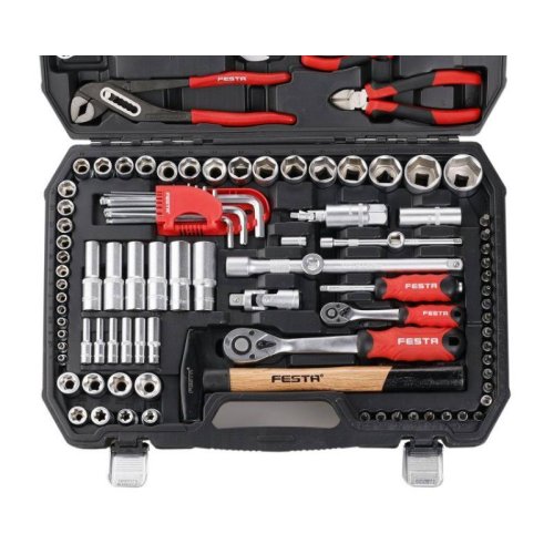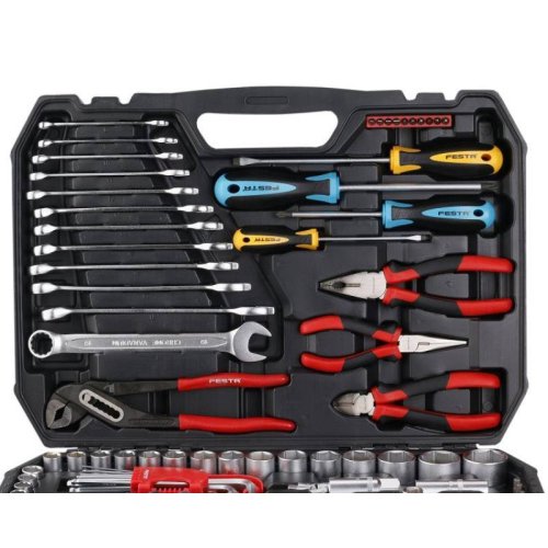 praktická univerzální sada nářadí v profesionální kvalitě GOLA sada FESTA 1/4" a 1/2" s nejpoužívanějšími adaptéry sada očkoplochých CrV klíčů sestava nejpoužívanějších FESTA kleští, kleště SIKO 250 …